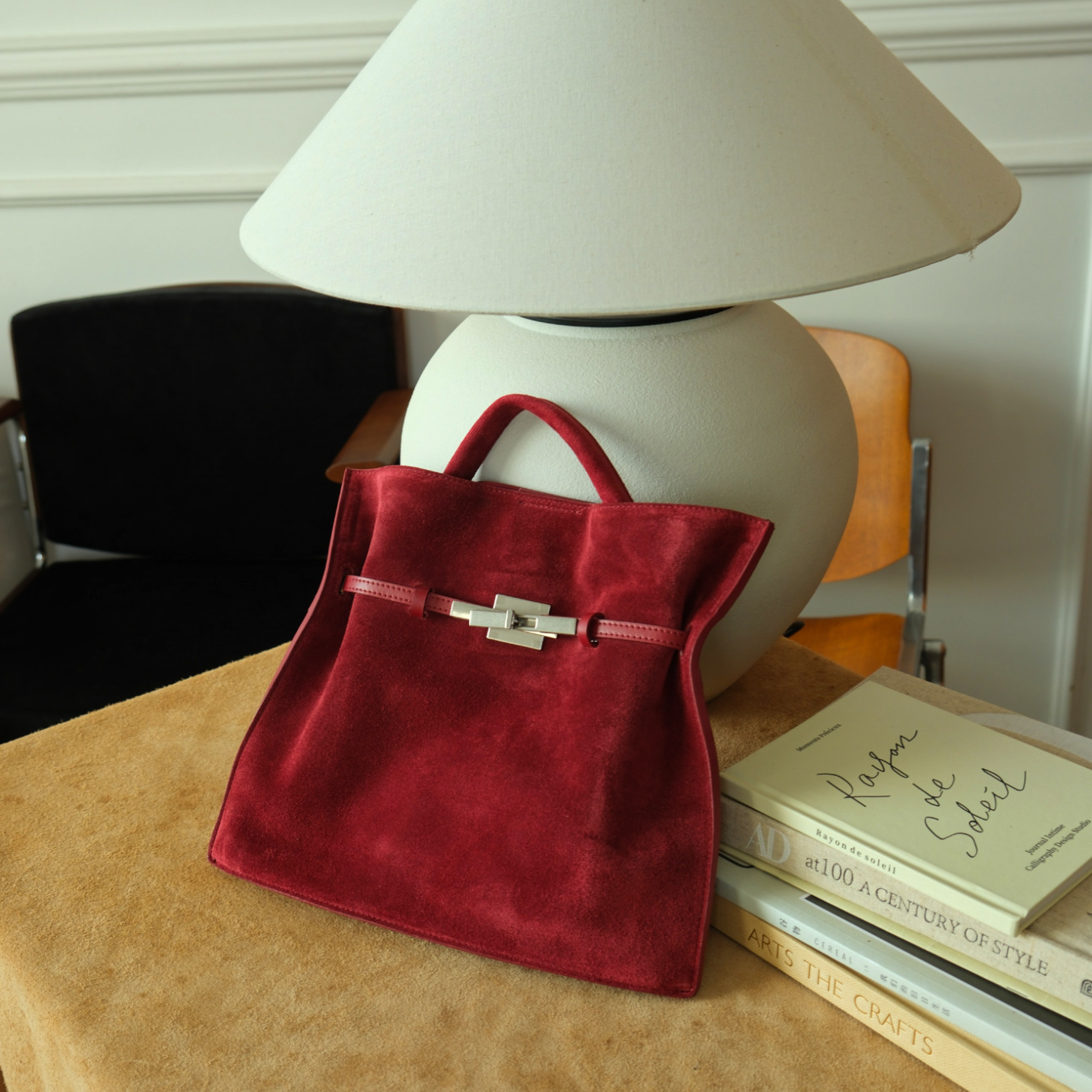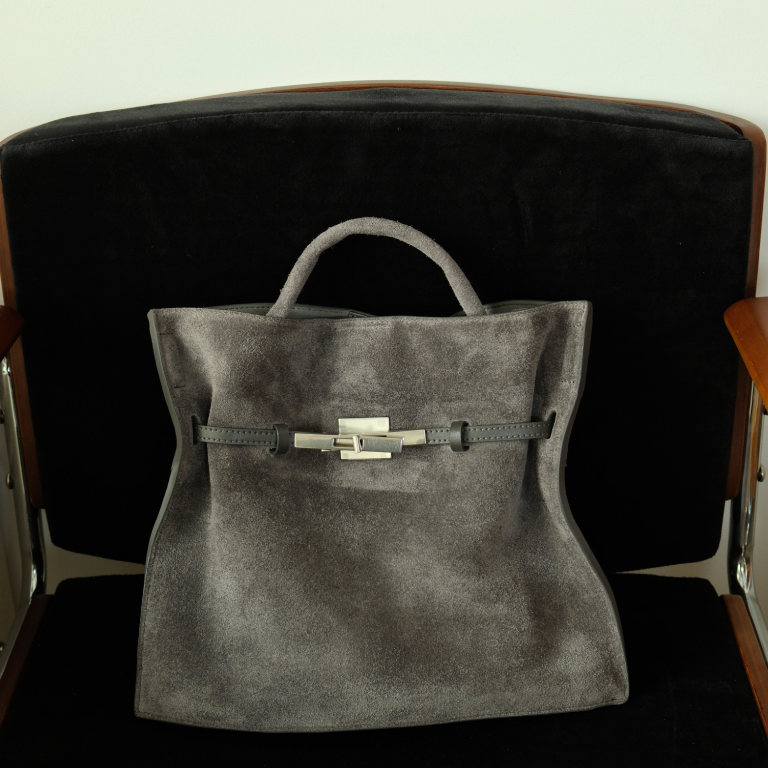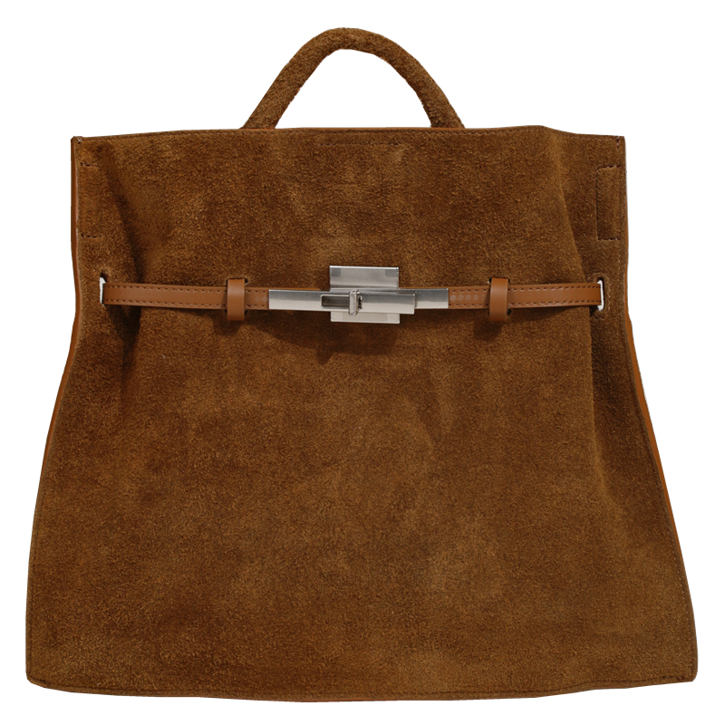 【EZRO】一作 麂皮真皮磨砂牛皮凯莉托特包锁扣扁包斜挎女包新款