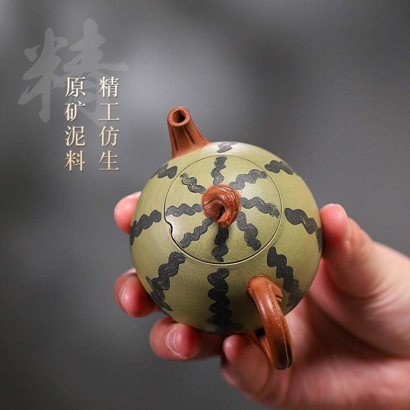 宜兴原矿绿泥小品紫砂壶手工制 仿生西瓜茶壶120cc小容量创意茶具