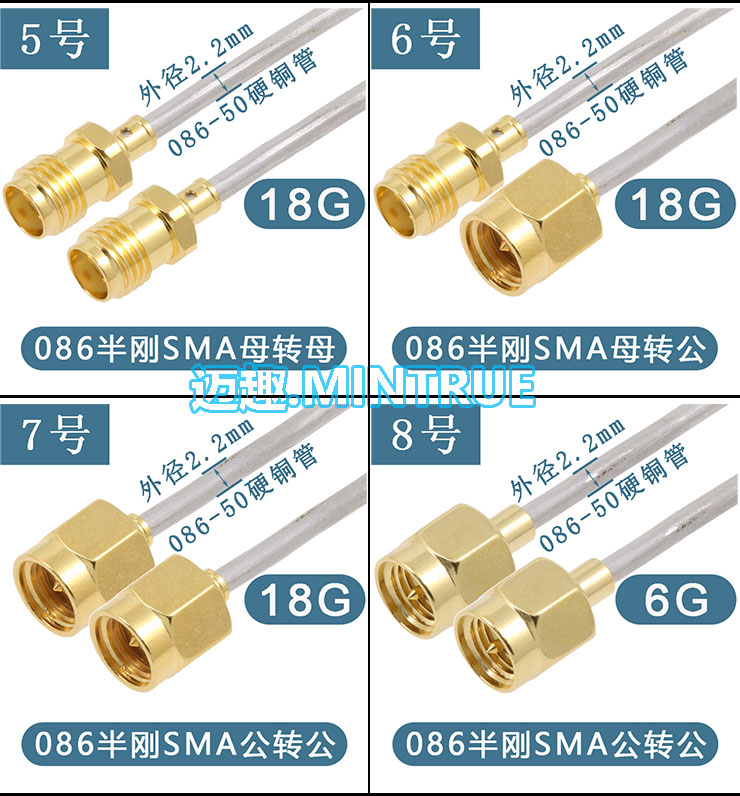 迈趣|SMA公母头板端连接测试射频线 086半刚硬铜管 6G/18G低驻波