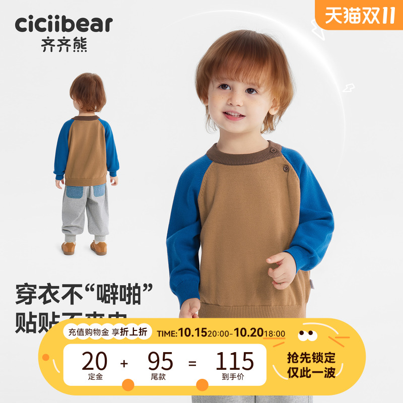 【预售抢先购】齐齐熊男童毛衣冬款加厚宝宝上衣儿童插肩
