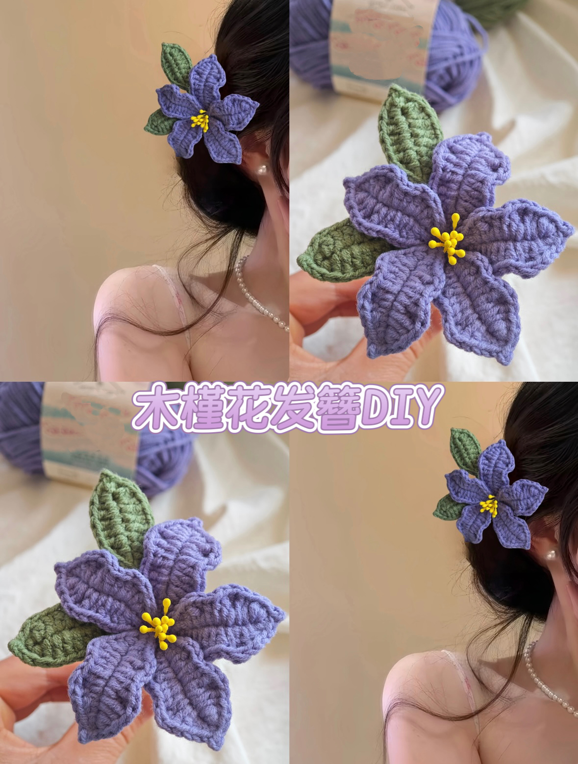 毛线钩针紫藤花樱花发簪发圈diy自制材料包手工编织发饰送闺蜜