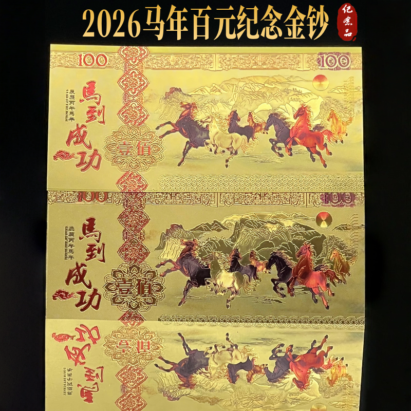 2026仿金箔马年生肖午马纪念收藏金钞商务活动会销百元利是封红包