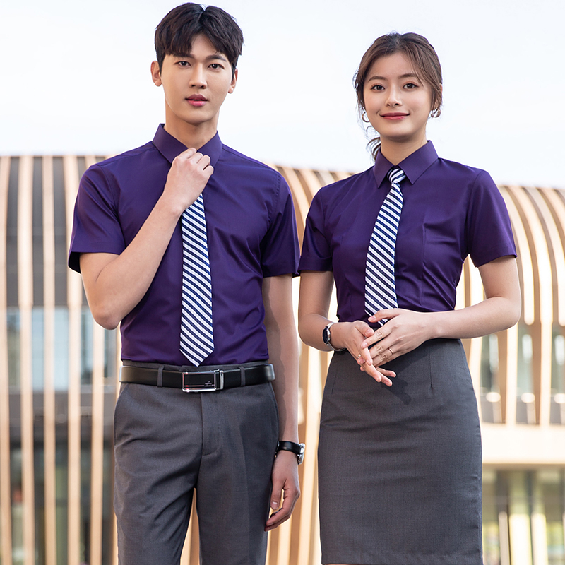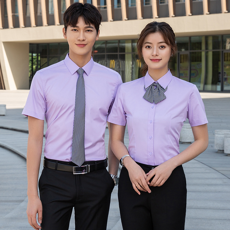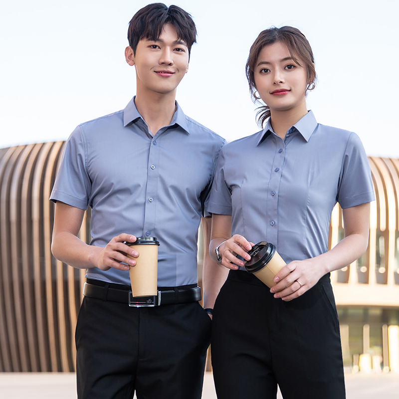 职业男女短袖白衬衣工作服地产销售抗皱衬衫单位工装套装定制LOGO