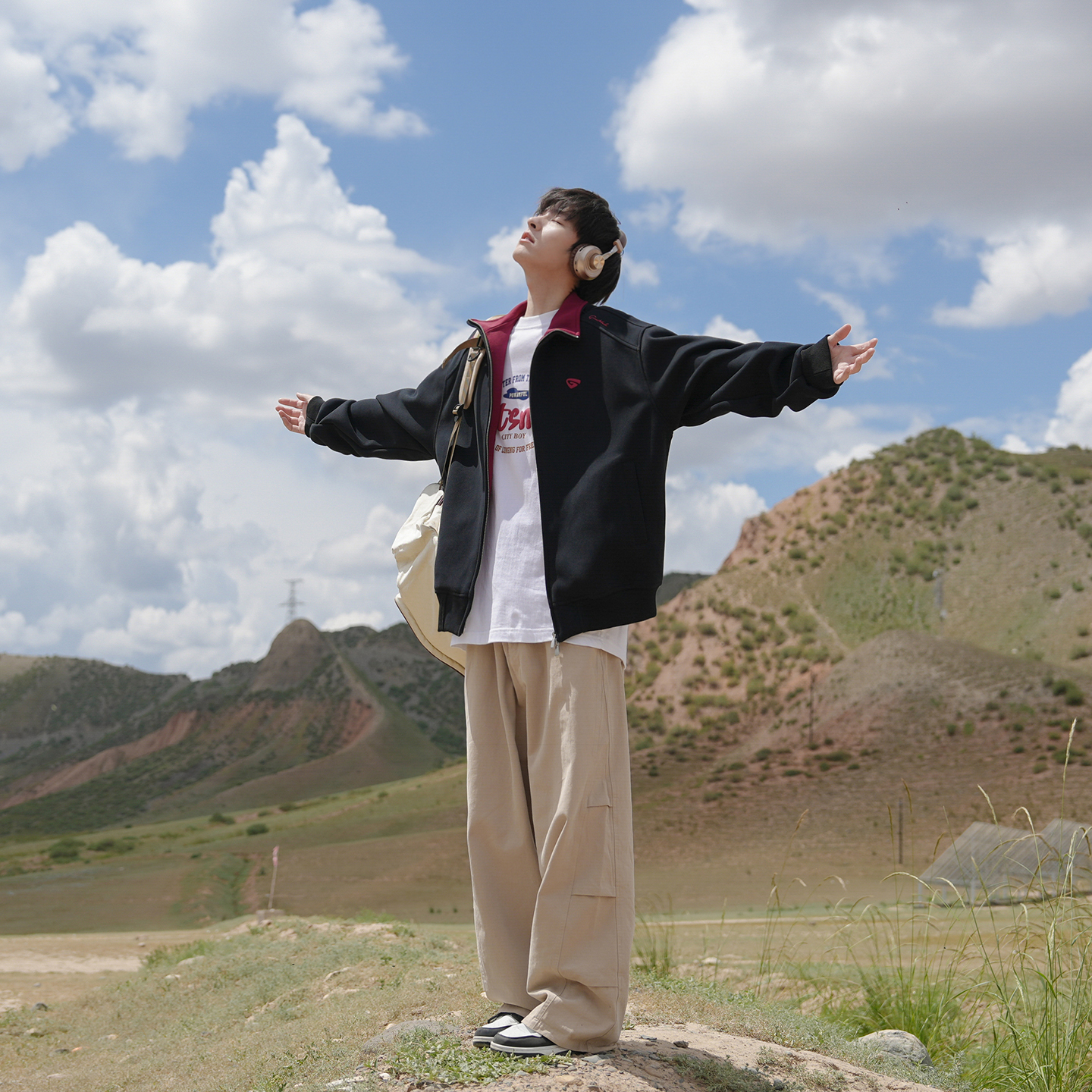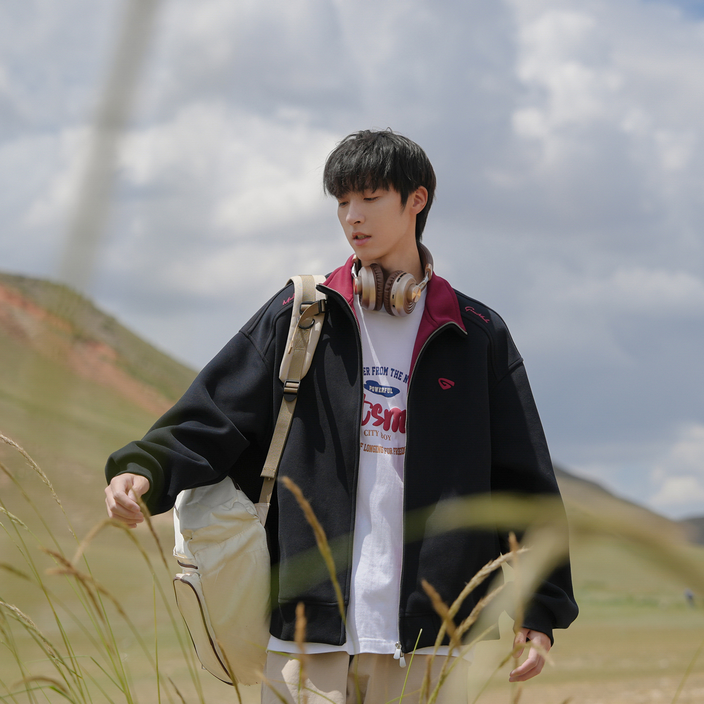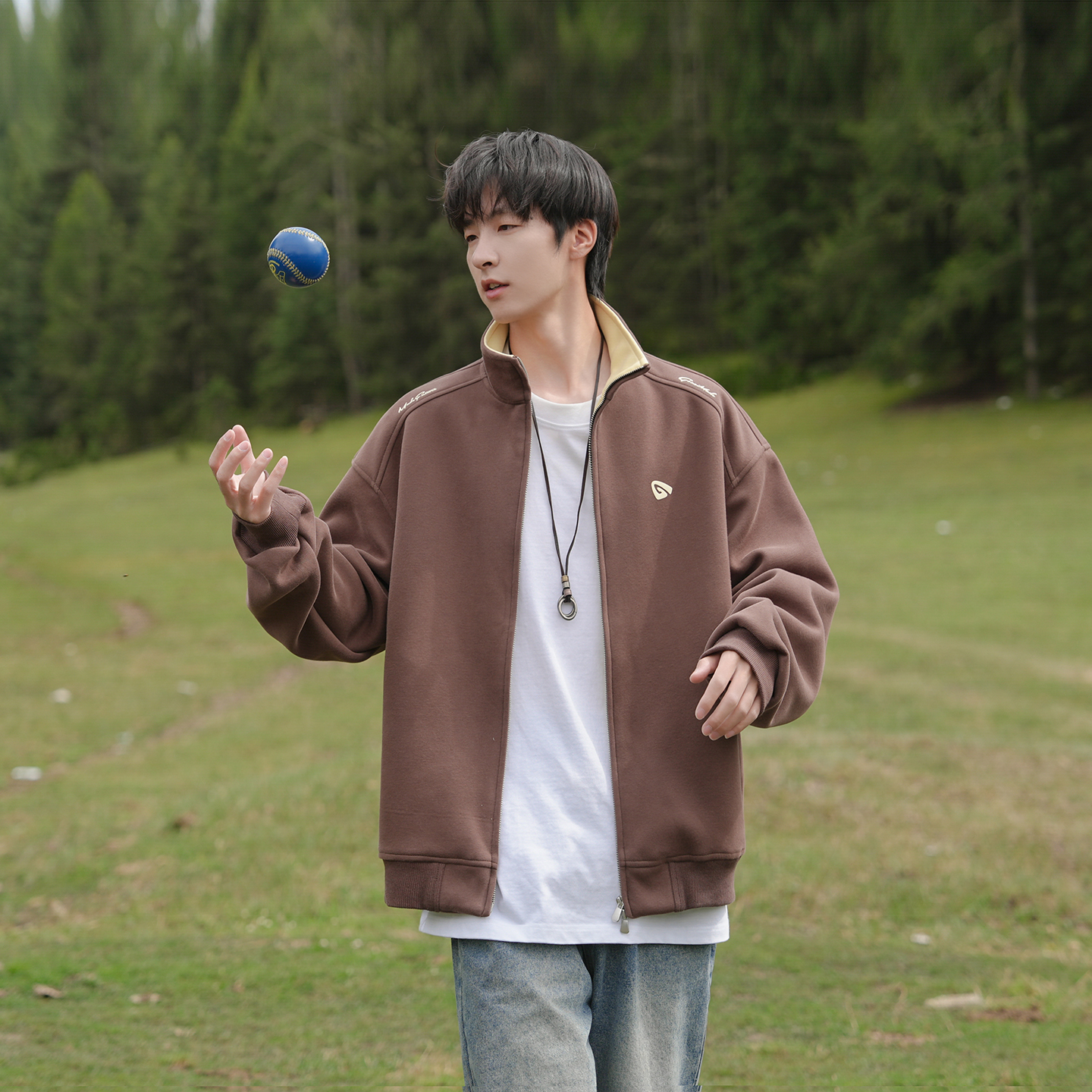 @港仔文艺男 日系重磅解构立领外套男秋季2025新款青少年宽松夹克