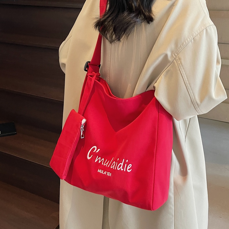 休闲刺绣帆布托特包大容量单肩包