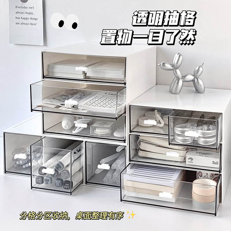 亚克力置物架桌面透明收纳盒抽屉式书桌宿舍文具收纳柜化妆品ins
