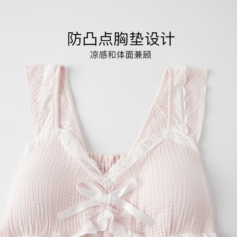 女士纯棉睡裙带胸垫一体吊带女夏季睡衣全棉纯欲风夏款2025新款夏