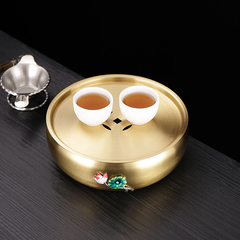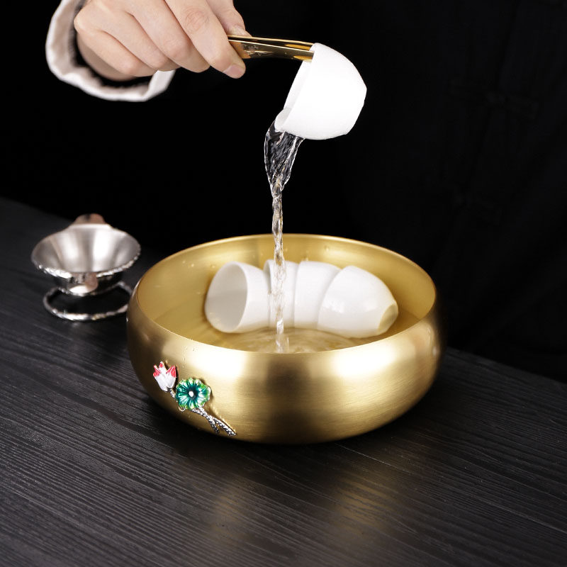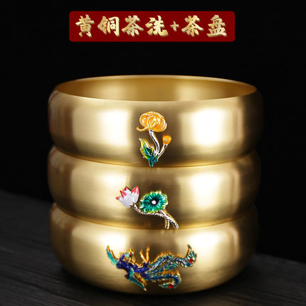 黄铜大号水盂茶洗中式家用带盖特大茶盘功夫茶具配件洗茶杯建水缸