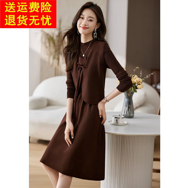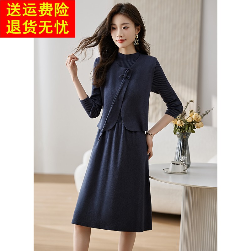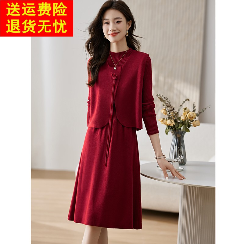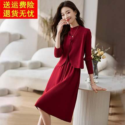 2025新款秋冬年轻妈妈两件套连衣裙喜婆婆婚宴装礼服平时可穿套装