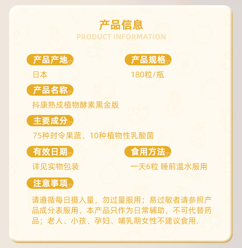 日本dokka抖康香槟黑金熟成植物酵素果蔬清肠宿便排纤维加强版