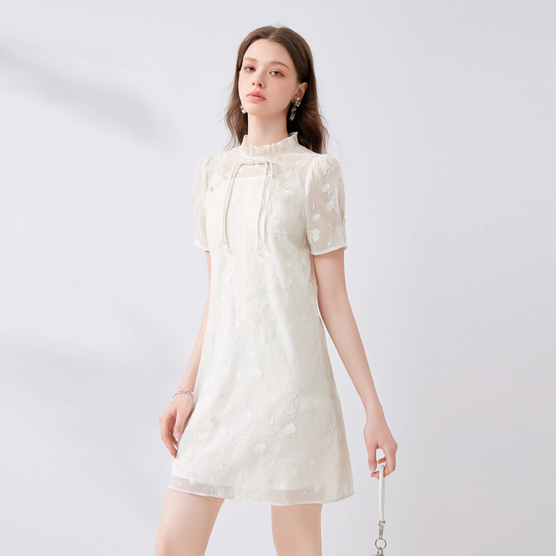 秋水伊人蕾丝绣花新中式连衣裙2024夏季新款女国风优雅小个子裙子
