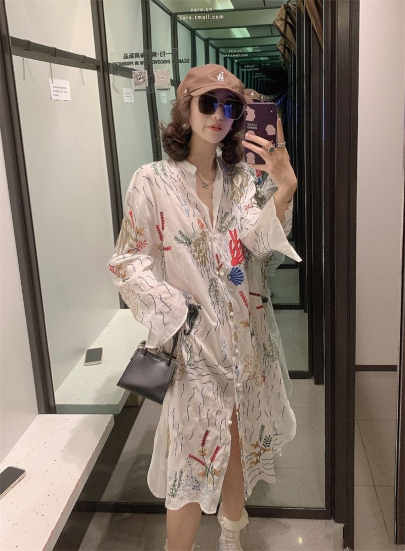 ZA女装春夏新款 宽松休闲刺绣长款衬衫式连衣裙 5107047 251