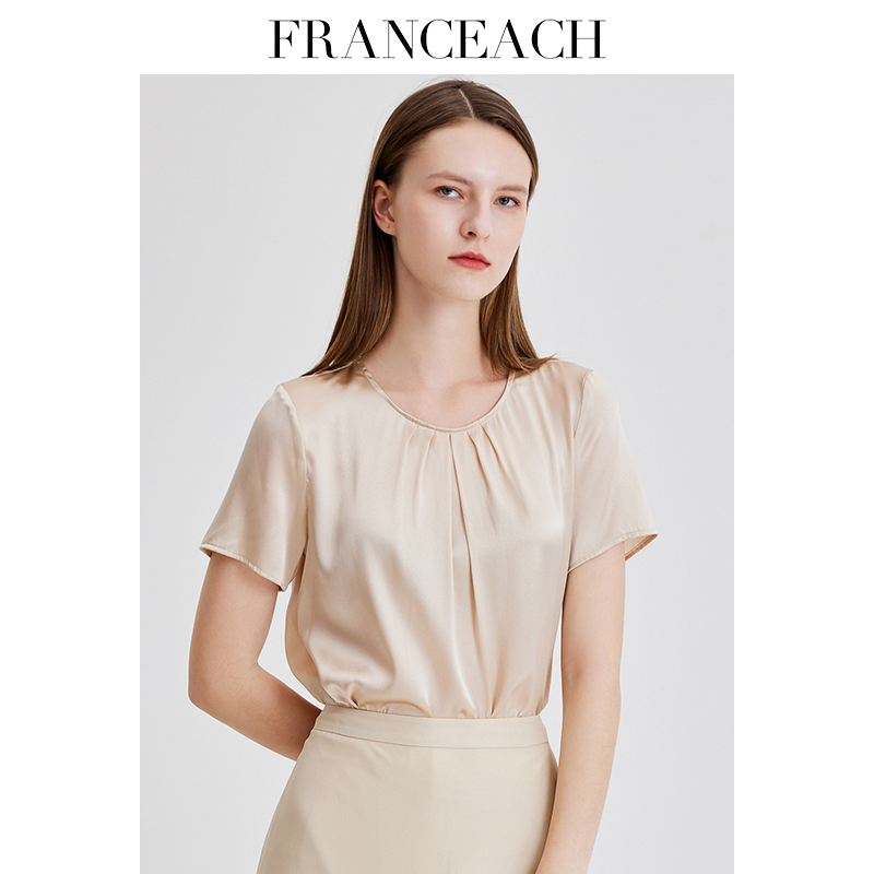 法涵意弛2025春夏季新款真丝T恤女设计感小众法式桑蚕丝上衣小衫