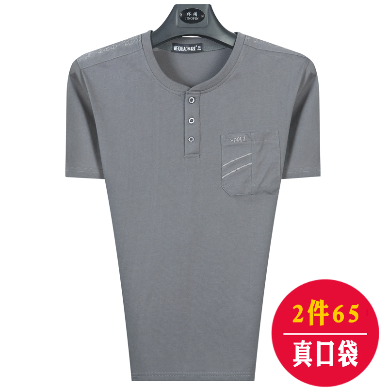 中年男士短袖t恤圆领大码中老年人男装T恤薄款夏季V领爸爸装父亲
