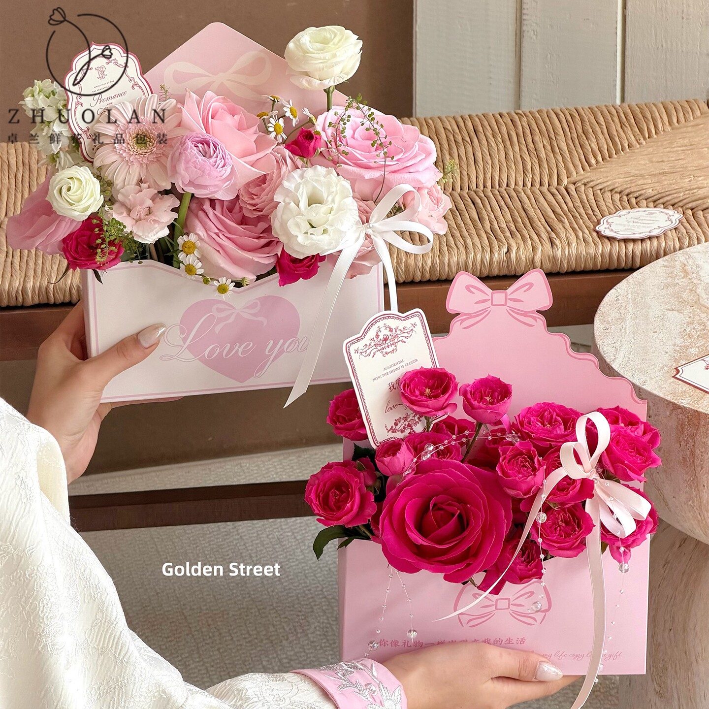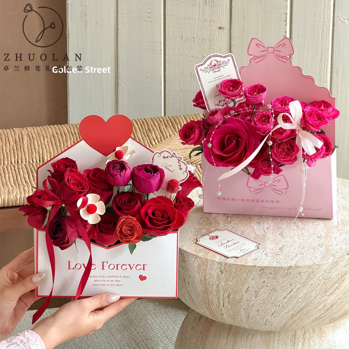 情人节新款情书盒创意信封花束包装盒玫瑰插花礼物diy礼品盒空盒