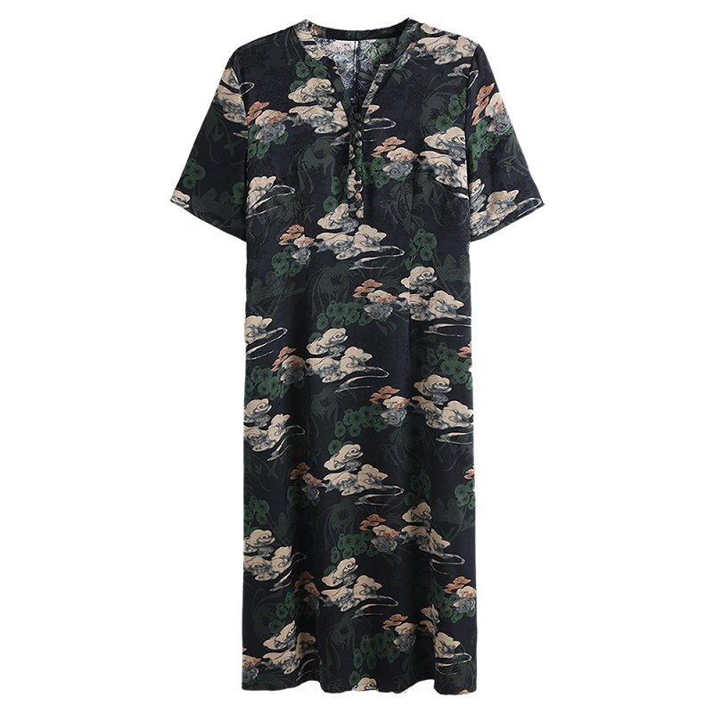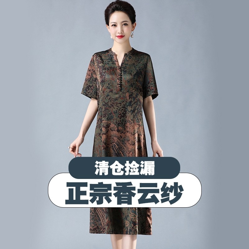 香云纱真丝连衣裙女夏季新款中老年妈妈装高端大码桑蚕丝裙子宽松