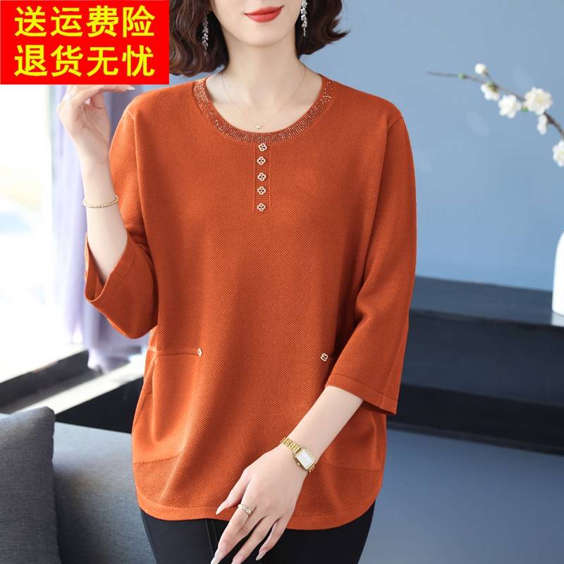 洋气中年妈妈春装冰丝T恤女宽松上衣加肥加大码遮肚桑蚕丝针织衫