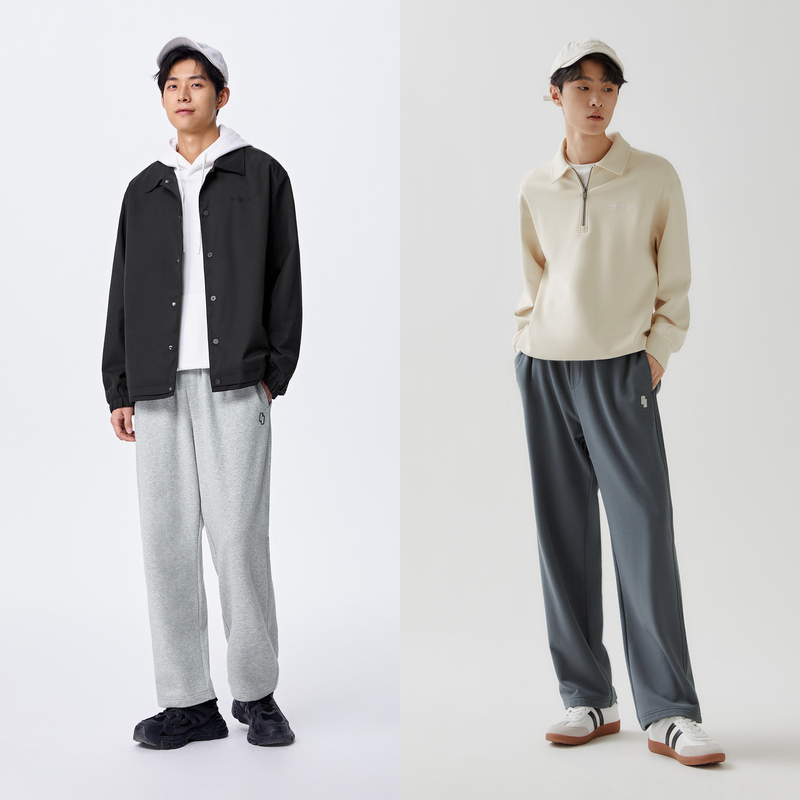 森马休闲裤男2025春季新款复古宽松运动美式直筒长裤男士灰色裤子