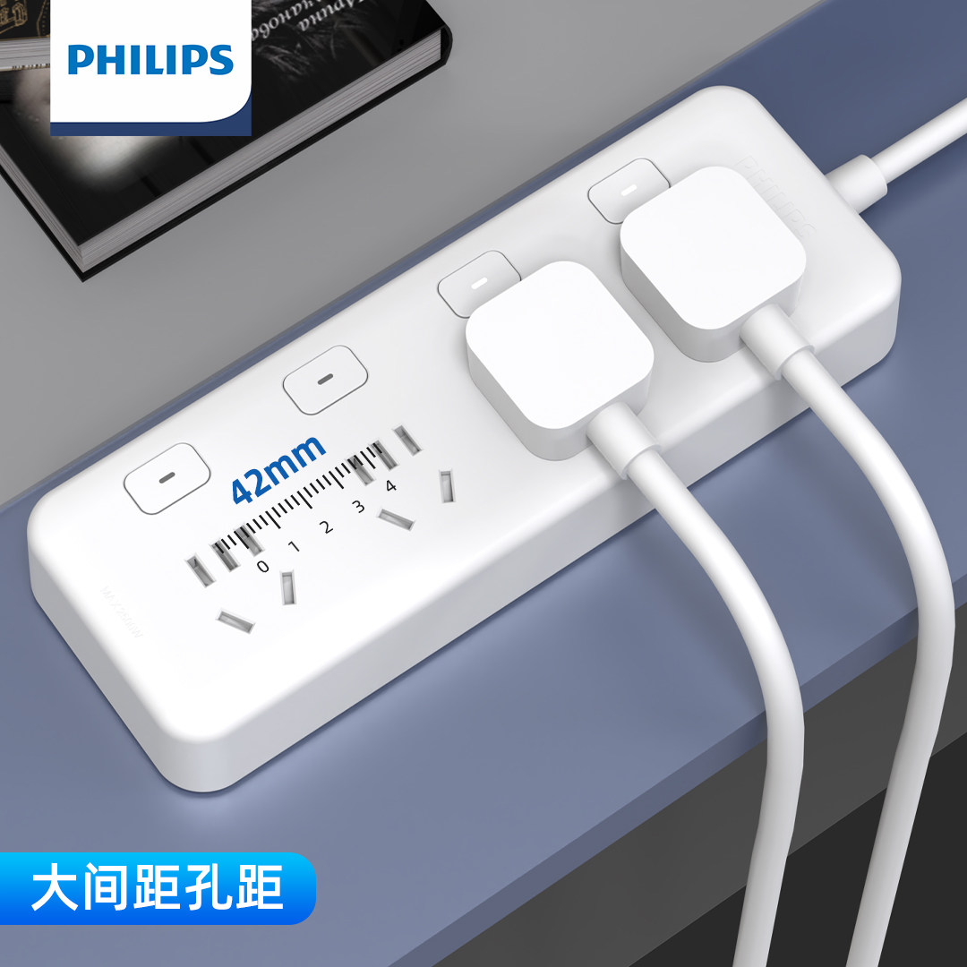 飞利浦新国标安全插座4位分控独立开关插排线板排插接线板拖线板