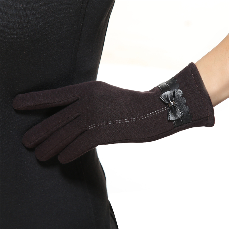 触屏手套女秋冬季可爱蝴蝶结骑行保暖手套女冬加绒开车户外晨跑步