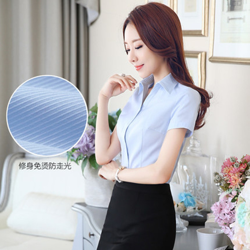 2024包邮 白衬衫女修身收腰V领细斜纹衬衣长短袖职业OL职业工服