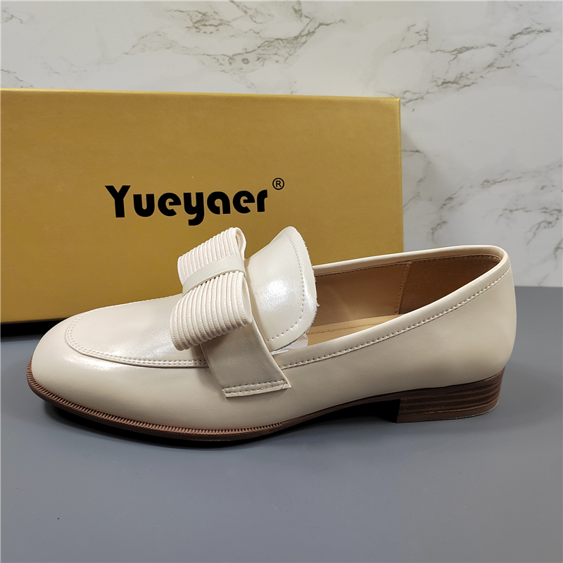 月芽儿真皮百搭低跟蝴蝶结乐福鞋