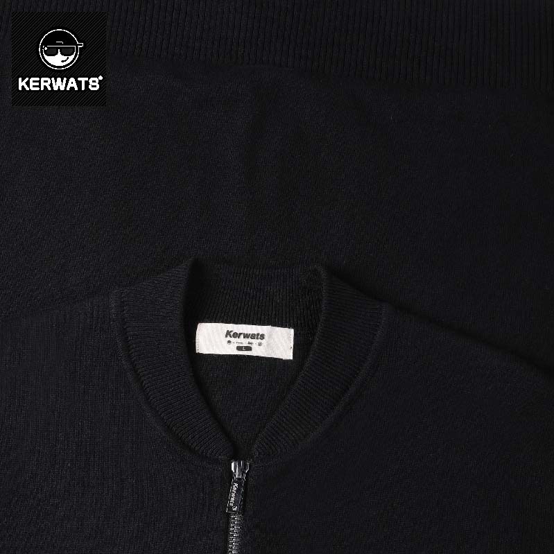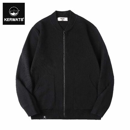 KERWATS秋冬季复古风开衫立领夹克黑色针织衫简约大码外套毛衣男