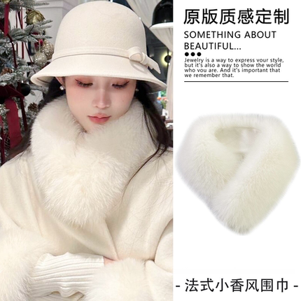 “傲娇千金大小姐”【米白毛毛围巾小香配饰高级感保暖围脖毛领女