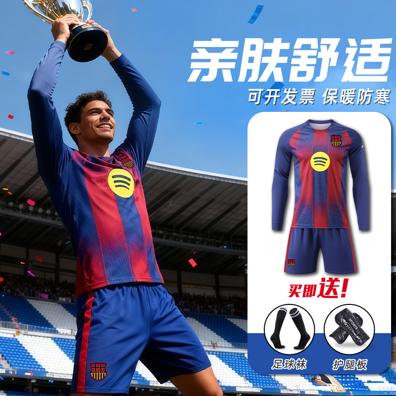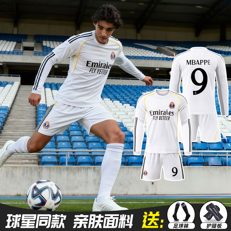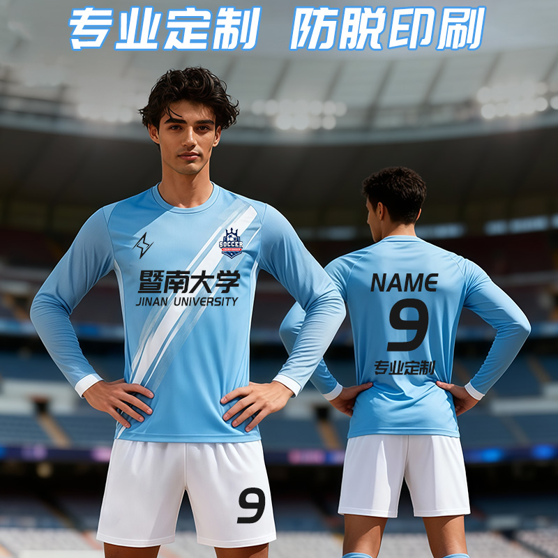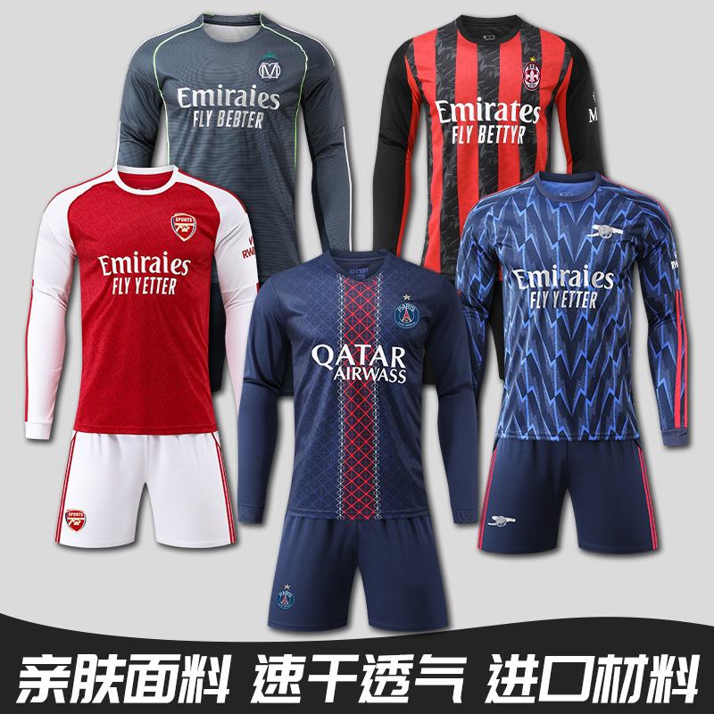 曼城球衣长袖足球服比赛队服定制皇马C罗巴萨梅西训练服套装秋冬