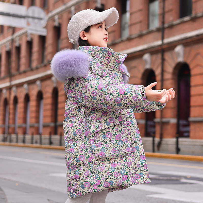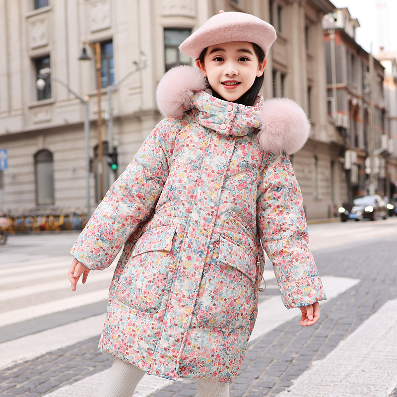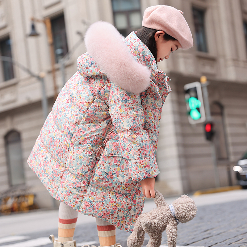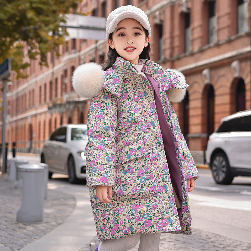 AGLFLIN儿童羽绒服女童洋气中长款外套女孩女宝宝白鸭绒加厚外套