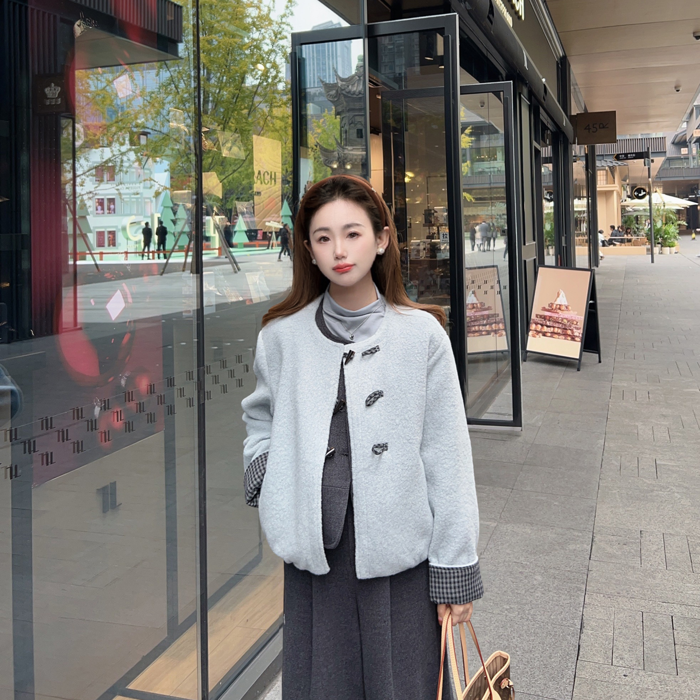 小小家 小个子小码夹棉颗粒绒短外套牛角扣圆领小棉袄上衣