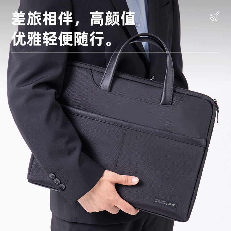 得力手提包休闲电脑包商务男款通勤大容量公文包女士牛津布拉链式牛津防水资料文件袋多层档案整理收纳63815