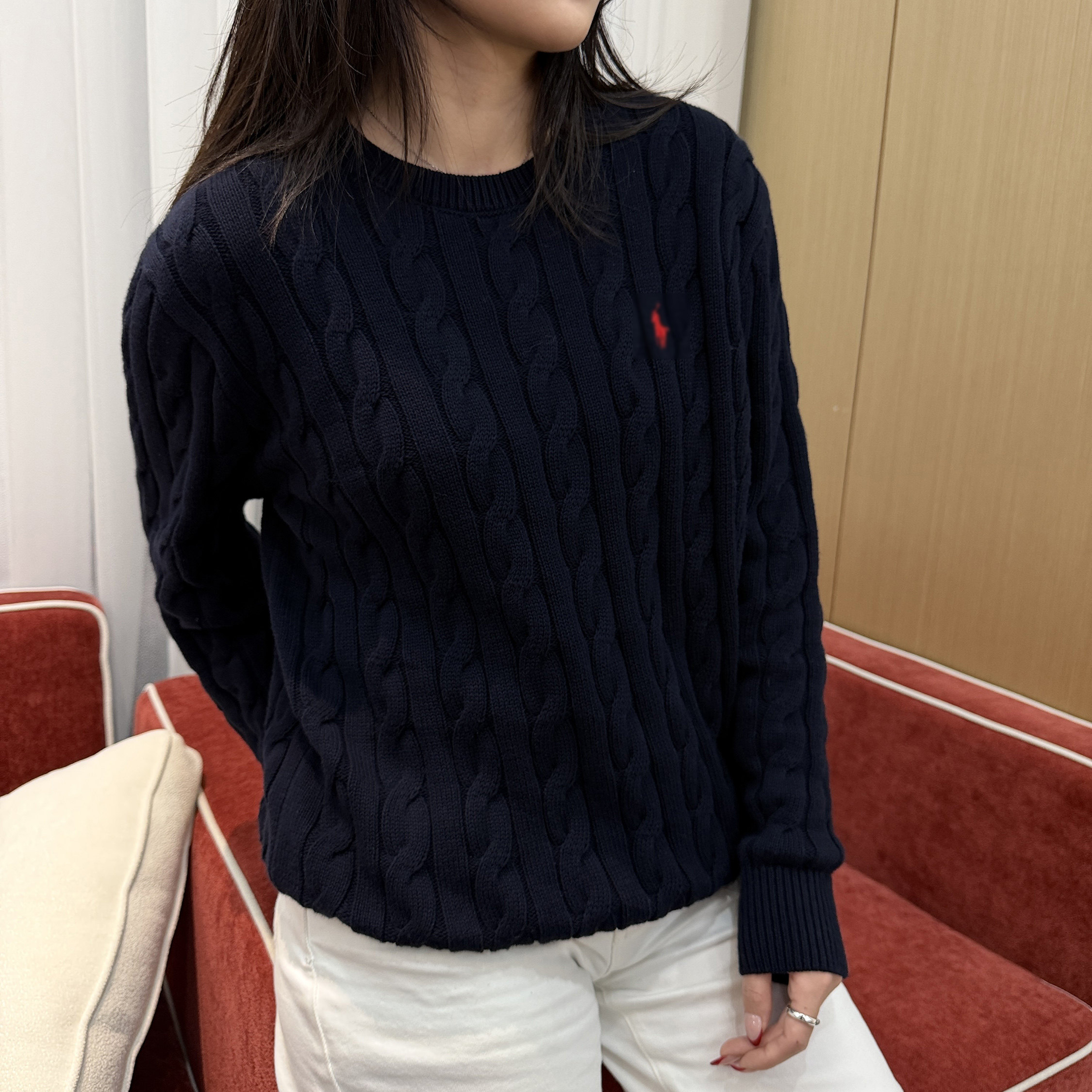 SEASONMARK马球刺绣绞花毛衣