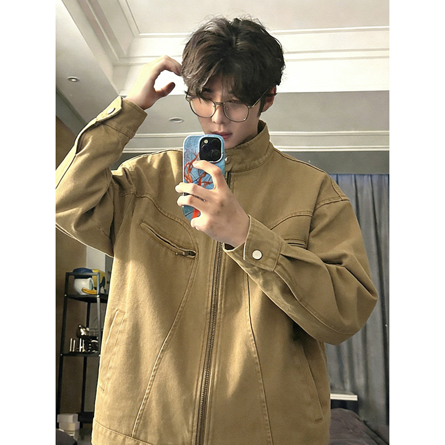 美式复古立领哈灵顿工装外套春季