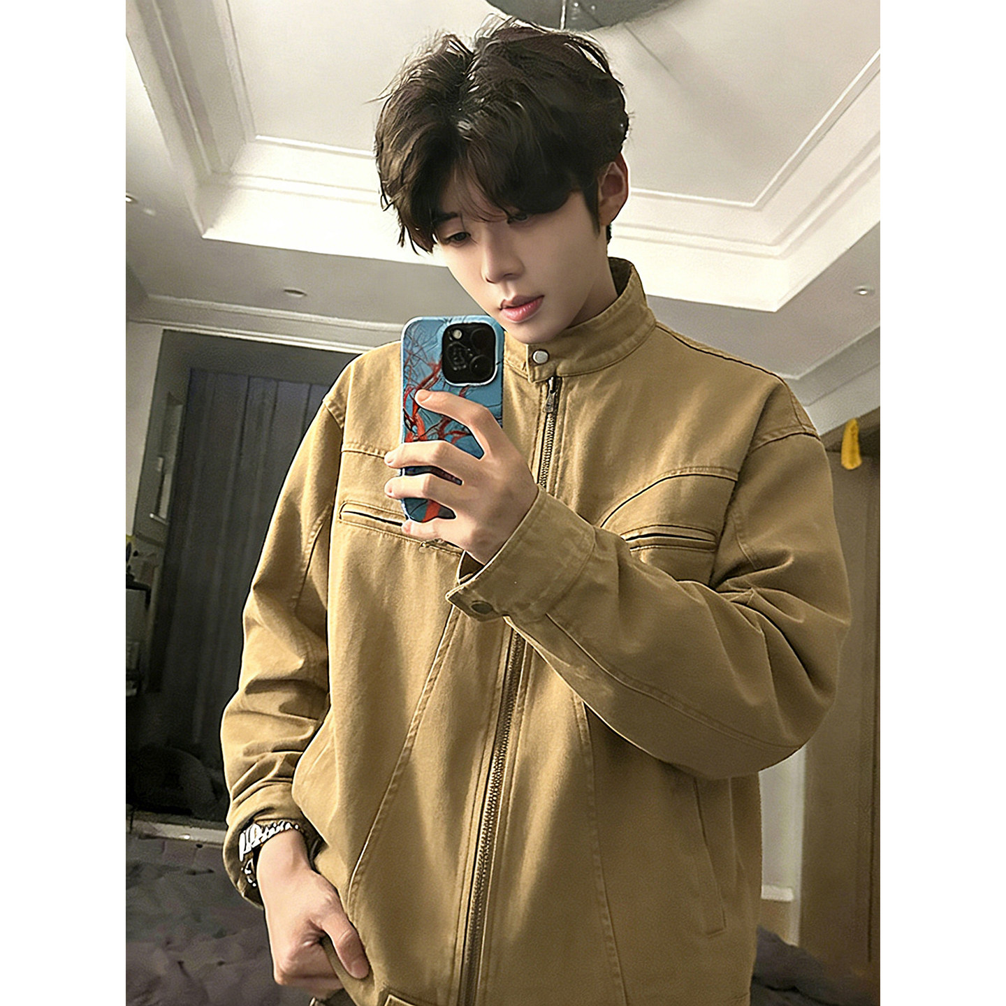 美式复古立领哈灵顿工装外套男款春季穿搭底特律水洗做旧短款夹克