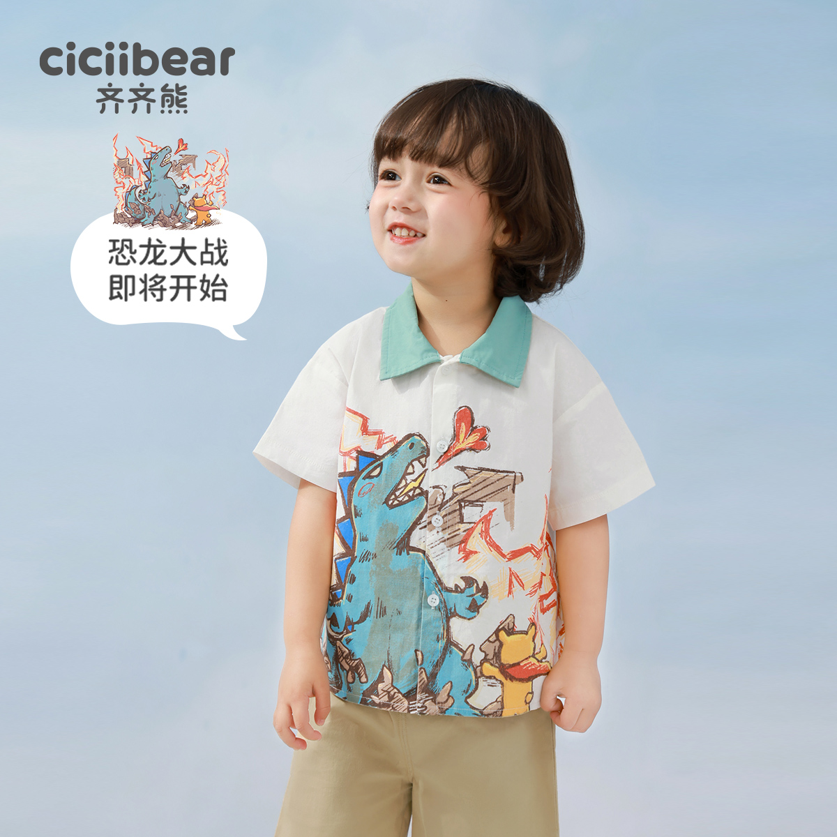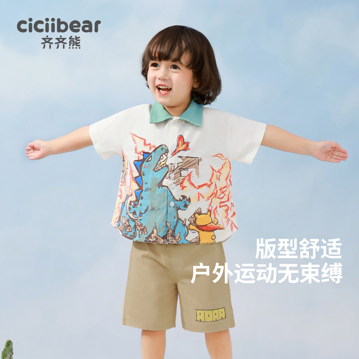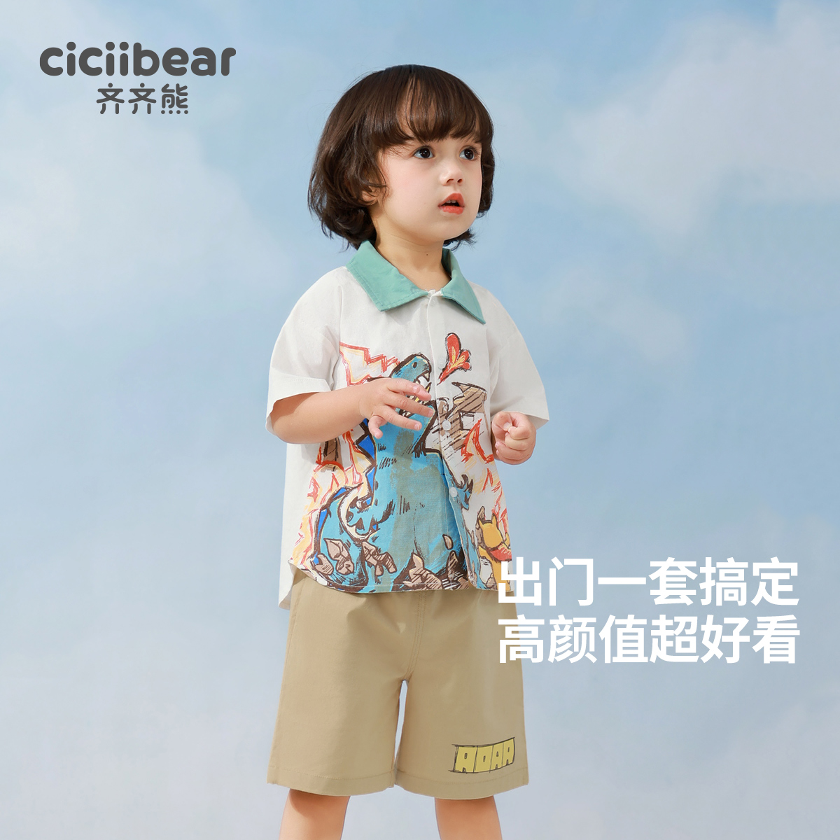 齐齐熊宝宝短袖套装男童恐龙衬衫短裤小童夏装撞色上衣裤子