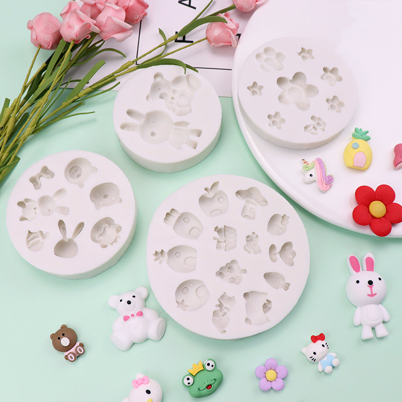 韩式巧克力翻糖蛋糕装饰花朵硅胶模具卡通小动物小熊小兔猫咪蘑菇