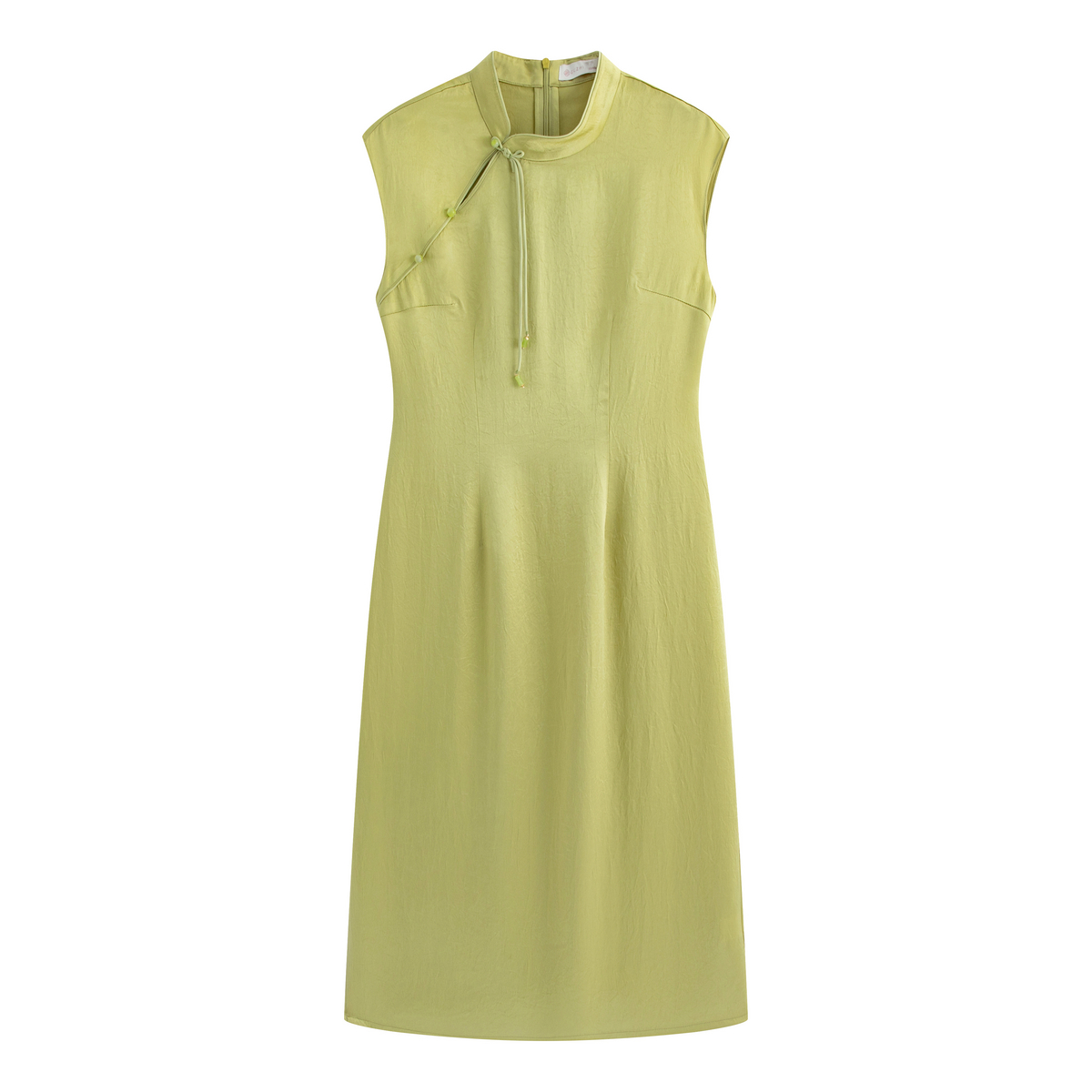 固执2025夏季新款新中式立领无袖中长款醋酸改良气质旗袍连衣裙