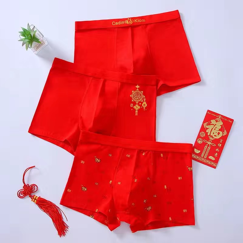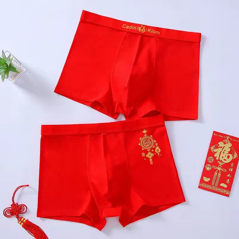 本命年红色内裤男士纯棉平角四角短裤裤衩裤头结婚喜庆男生虎兔年