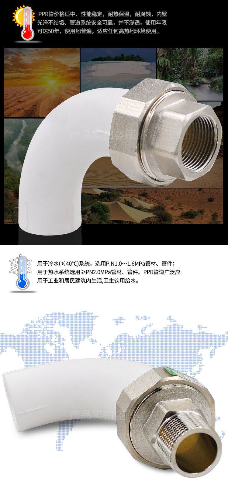 ppr顺水弯头大弯外丝活接配件