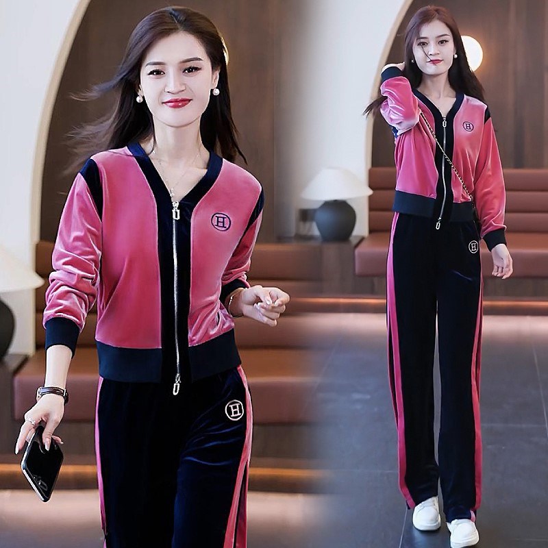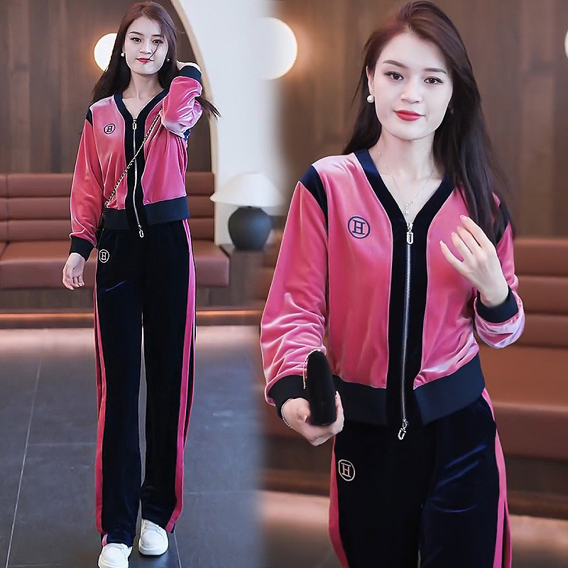 金丝绒运动套装女春秋新款欧货时尚减龄休闲服卫衣阔腿裤两件套潮