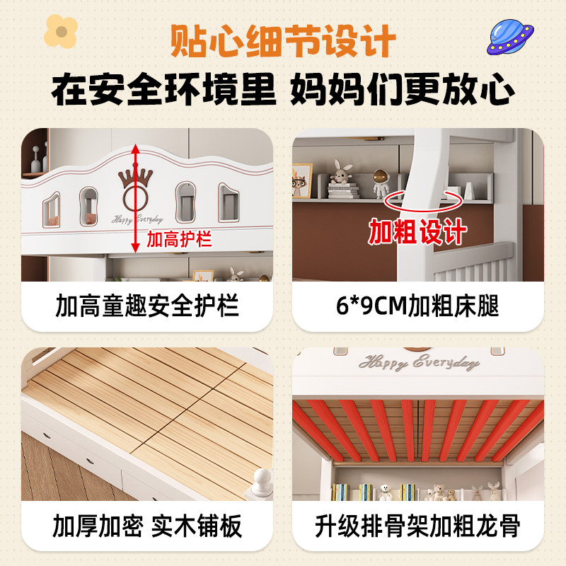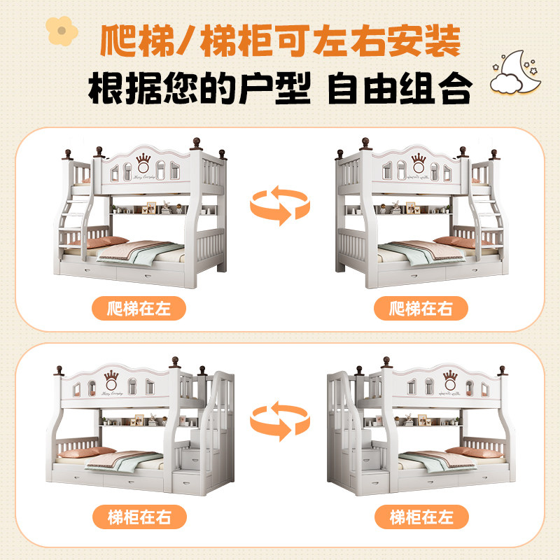 全实木上下床高低双层床两层双人床上下铺木床儿童床子母床组合床