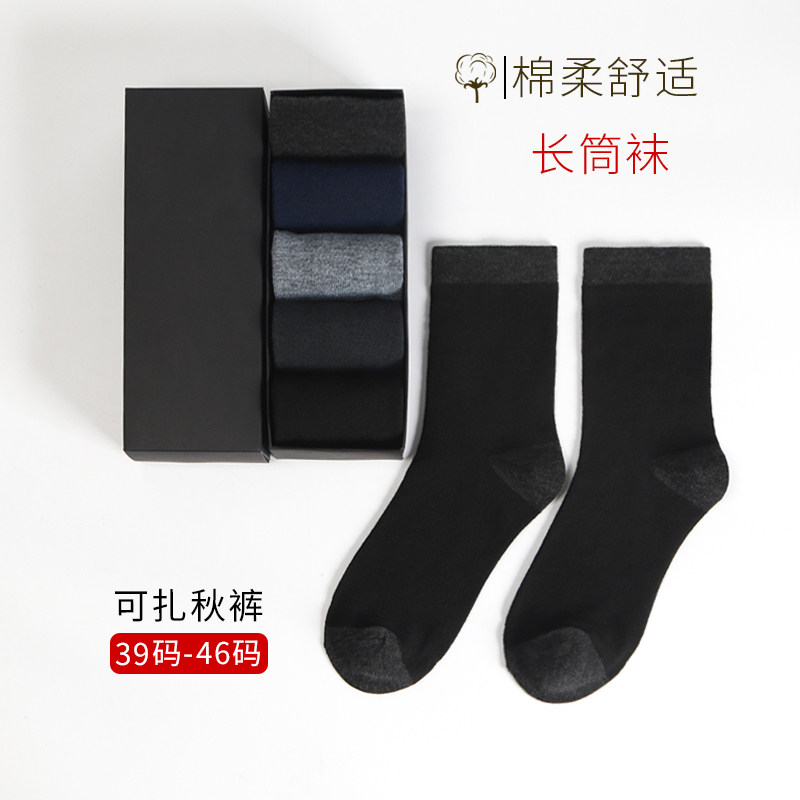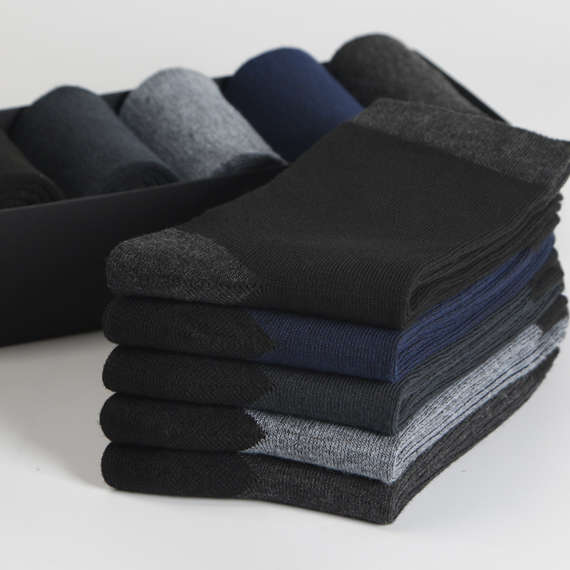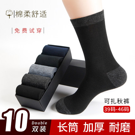 10双袜子男士长袜秋冬款加厚棉袜长筒大码中老年防臭中筒纯黑便宜