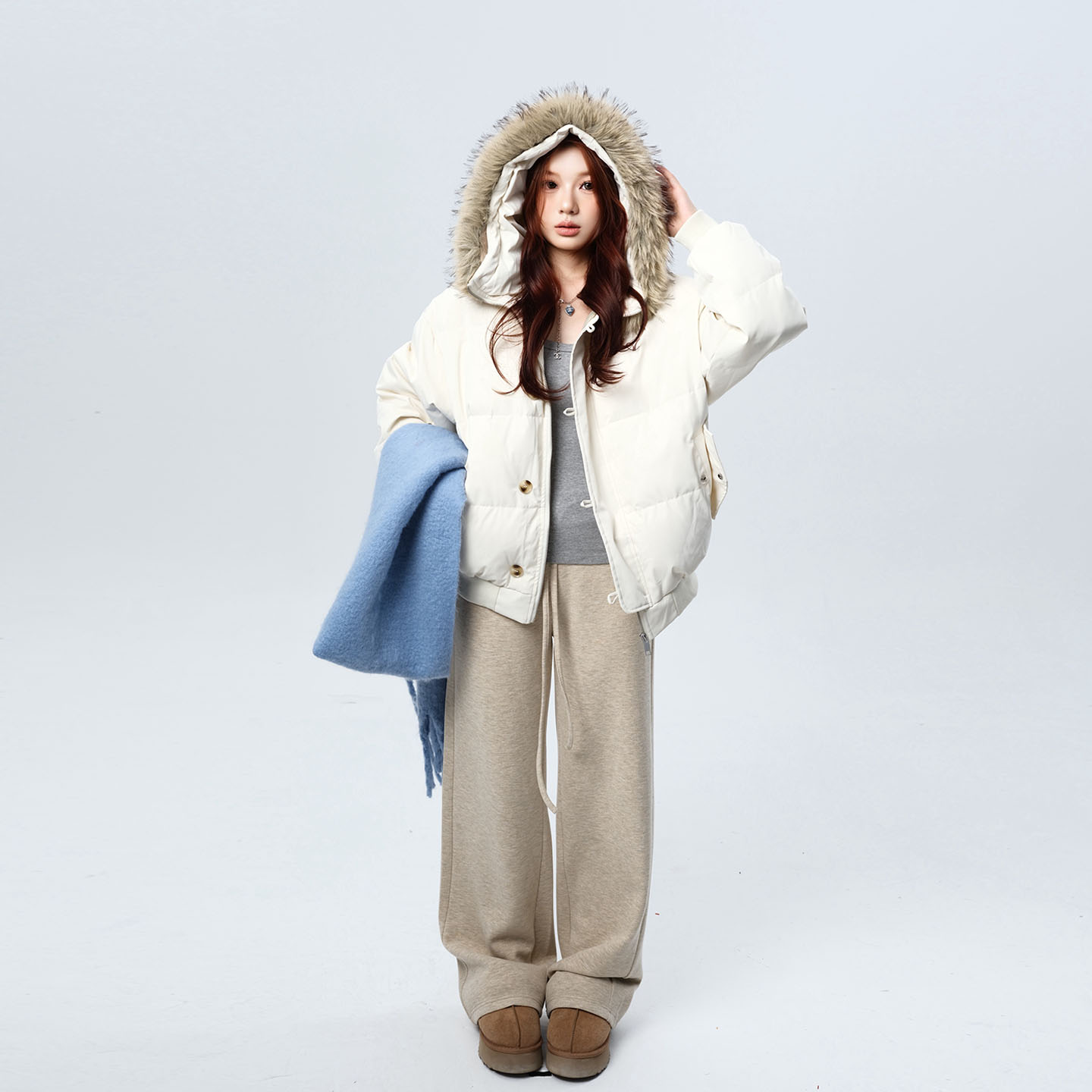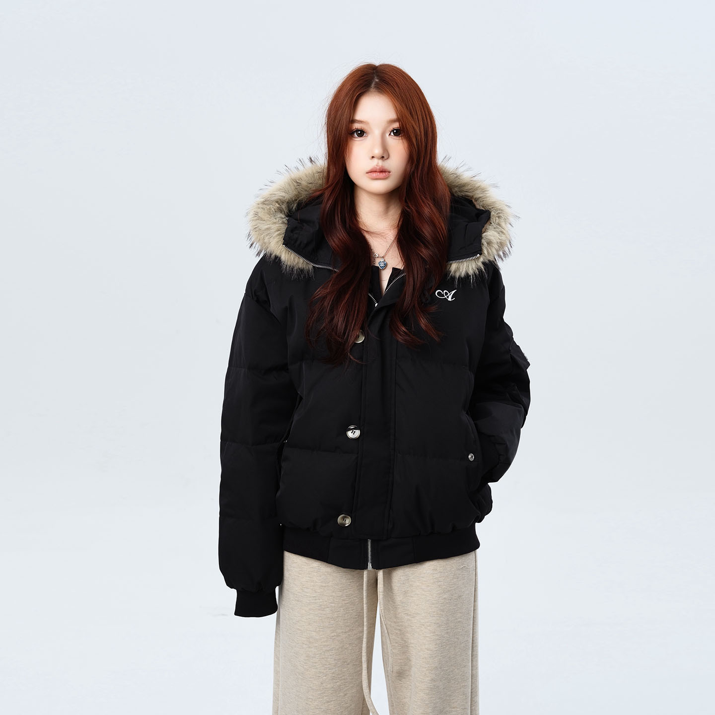 橘子树在哪儿复古毛领连帽派克羽绒服女冬季加厚保暖宽松休闲外套