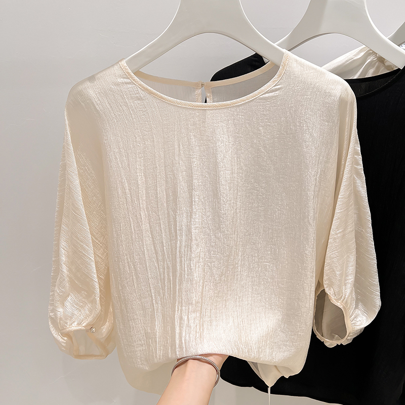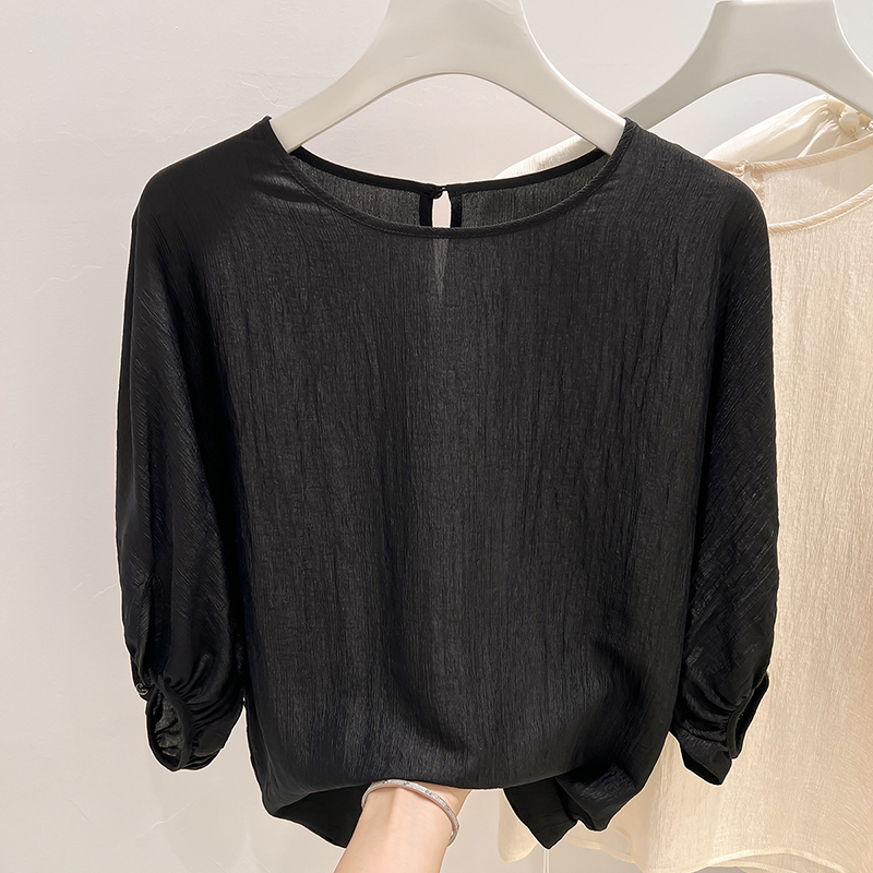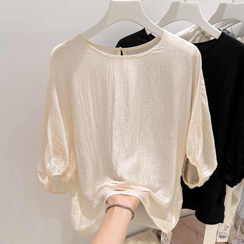 2025新款法式气质圆领灯笼袖纯色套头雪纺衫女夏季薄款上衣