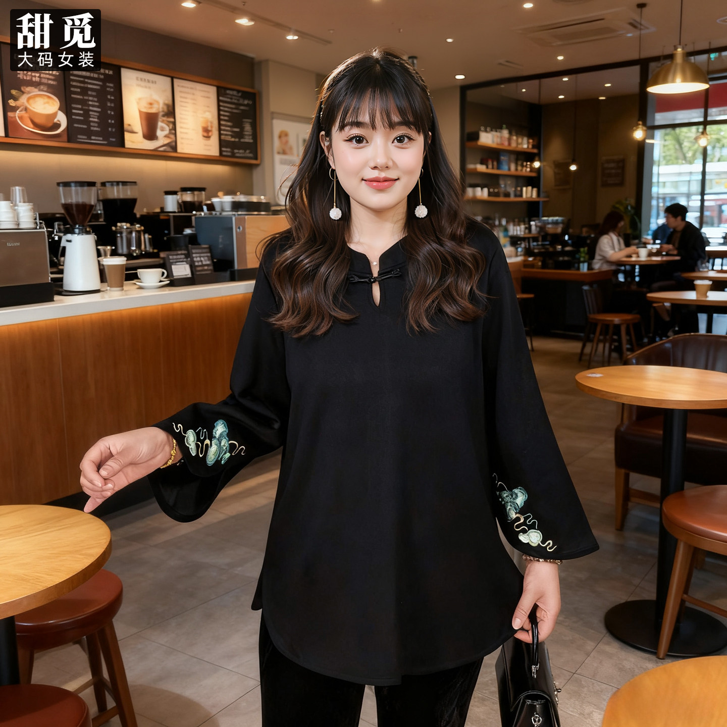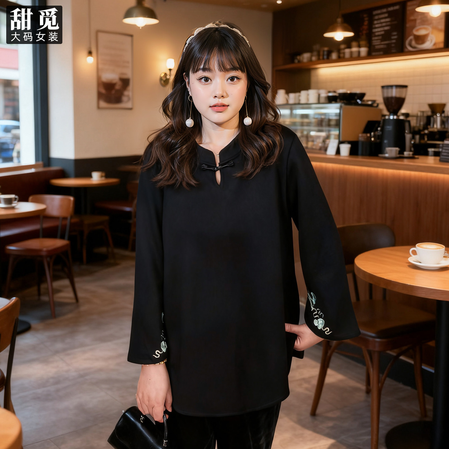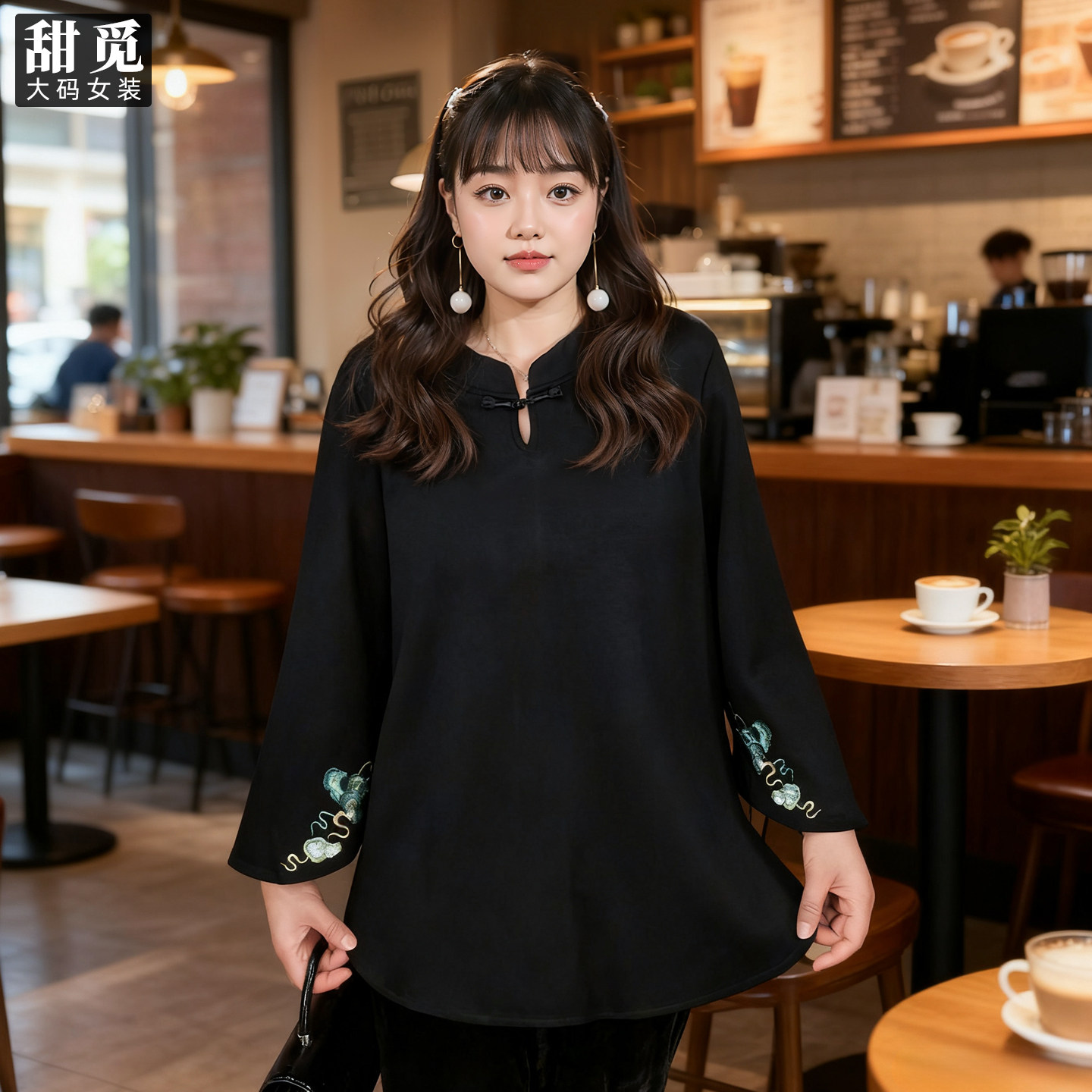 甜觅特大码女装秋冬装胖mm300斤重工刺绣新中式国风空气棉卫衣