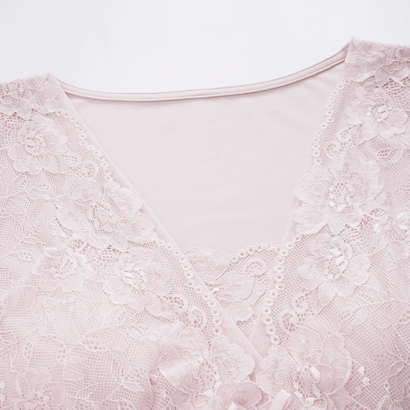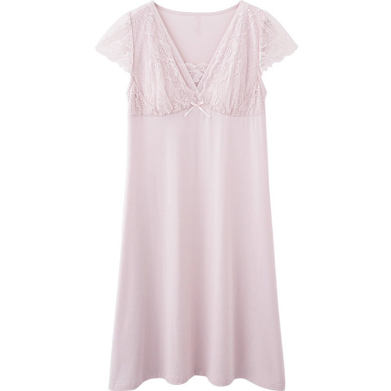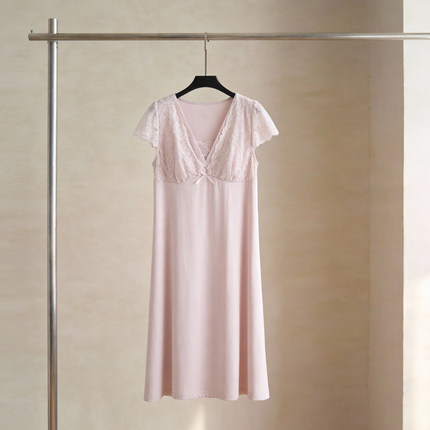 SLEEPTIGHT睡裙女夏季莫代尔棉性感带胸垫粉色甜美蕾丝绝美睡衣裙