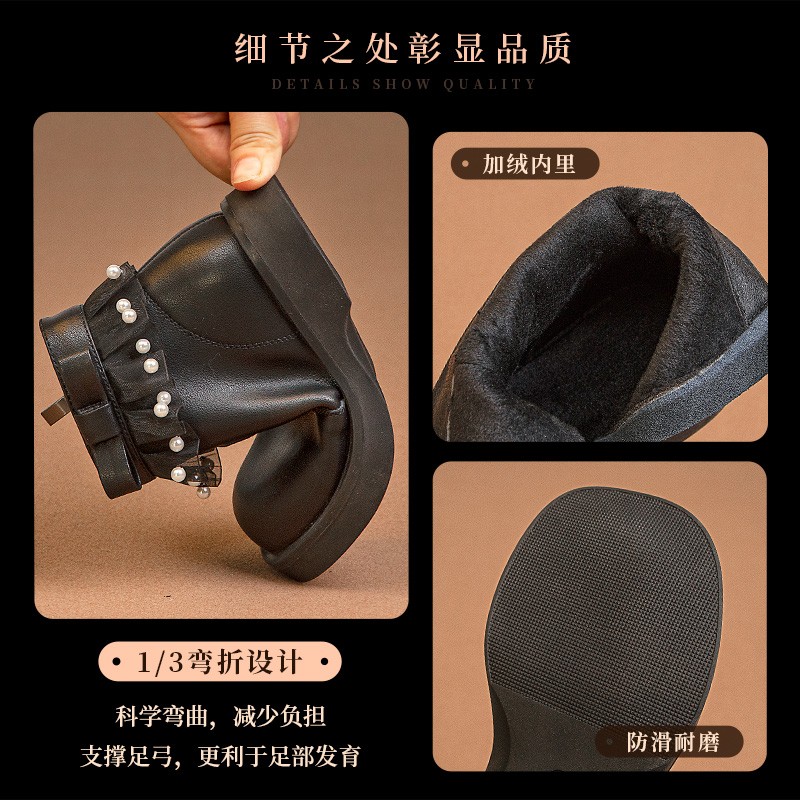 女童靴子公主短靴2025新款英伦秋冬款单靴软底秋季宝宝儿童马丁靴