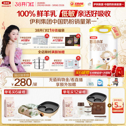 伊利金领冠悠滋小羊1段低敏0-6月新生婴儿羊奶粉一段700g*6罐