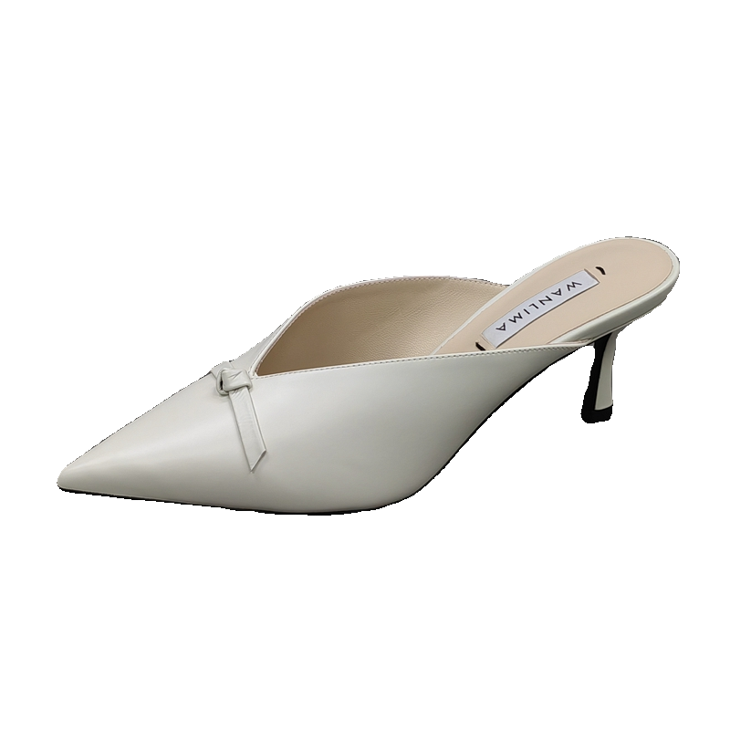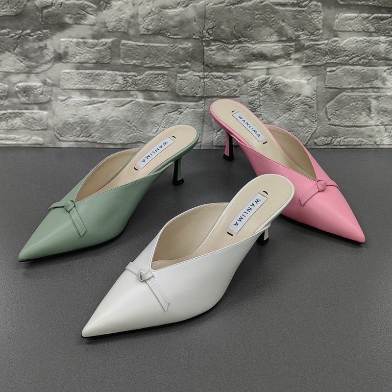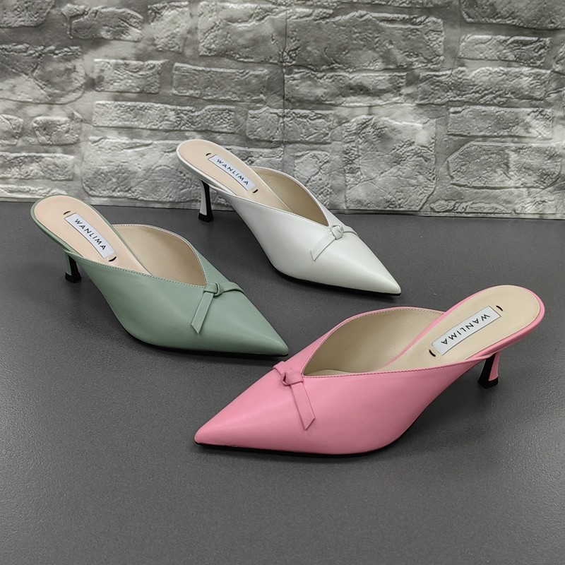 Wanlima/万里马撤柜处理夏季尖头时尚细高跟外穿真皮包头女凉拖鞋